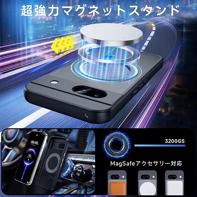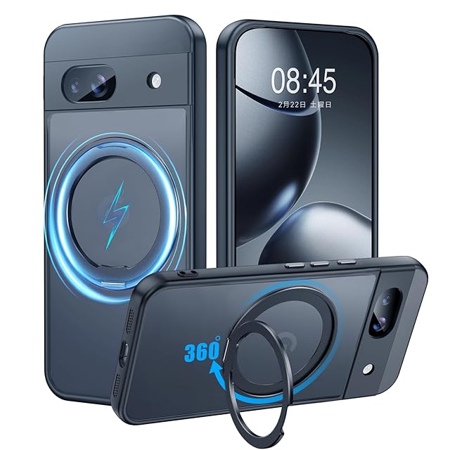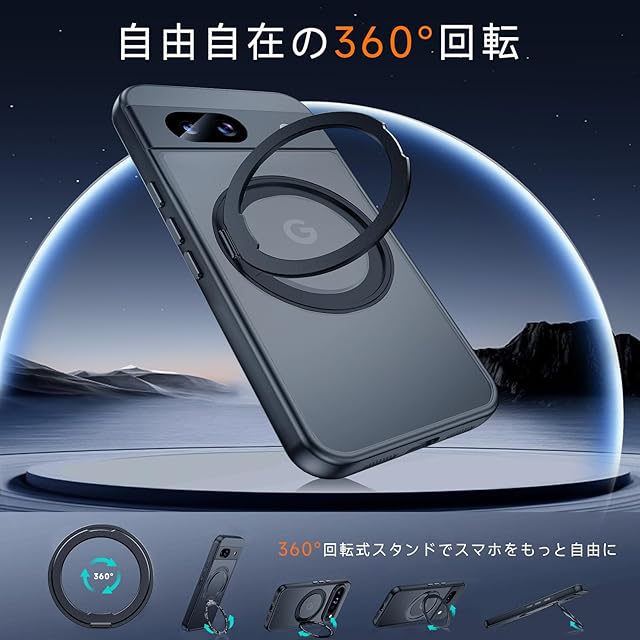 商品名:【米軍MIL規格・Magsafe対応】Google Pixel 8A 用 ケース MagSafe対応 リング 360°回転スタンド機能 縦横両対応 半透明 黄ばみ防止 ワイヤレス充電 レンズ保護 耐衝撃 携帯カバー グーグルピクセル8A カバー 6.1 インチ マグネット搭載 車載ホルダー マグセーフ対応 おしゃれ (ブラック)