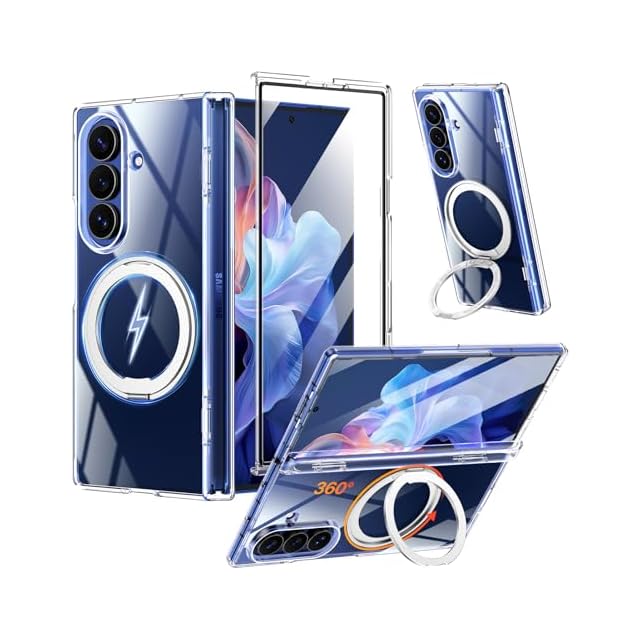 PETORA Galaxy Z Fold7 用 ケース リング付き MagSafe対応【360度回転式マグネットスタンド・縦横両対応】ガラスフィルム付き 米軍MIL規格 耐衝撃 ヒンジ保護 レンズ保護 透明 黄ばみ防止 滑り止め マグセーフワイヤレス充電対応 ギャラクシー Z Fold7 用 カバー おしゃれ スマホケース (クリア)
