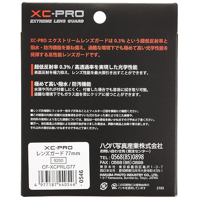 ハクバ HAKUBA レンズフィルター 77mm XC-PRO エクストリーム レンズガード 高透過率 撥水防汚 薄枠 日本製 レンズ保護用 光学ガラス使用 保護フィルター CF-XCPRLG77 4977187440546
