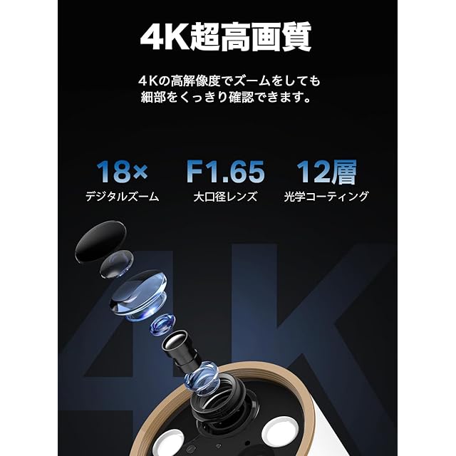 ✨【4K高画質】4K 800万画素の解像度とデジタルズーム機能で細部まで捉えて、鮮明な映像をお届けします。