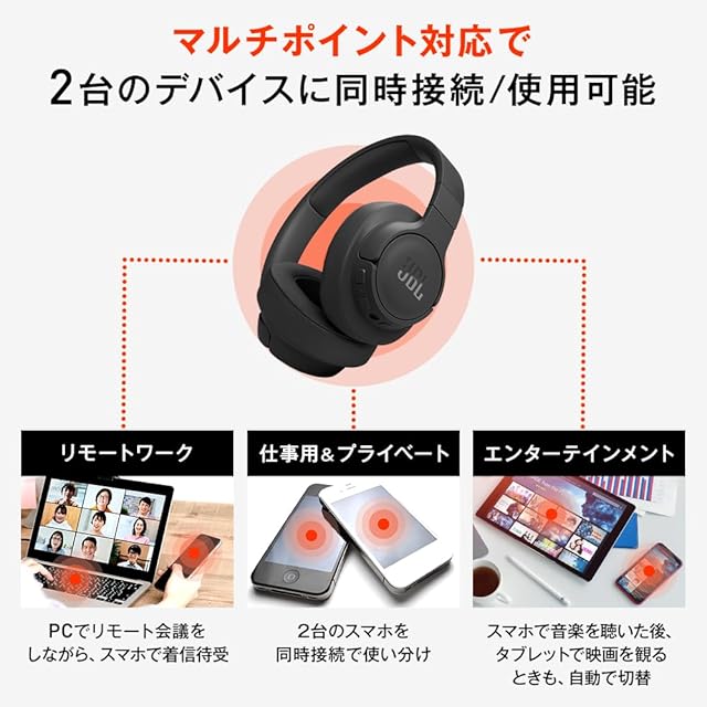 商品名:JBL TUNE 770NC ワイヤレスヘッドホン オーバーイヤー ノイズキャンセリング アプリ対応 マルチポイント 40mmドライバー (パープル)