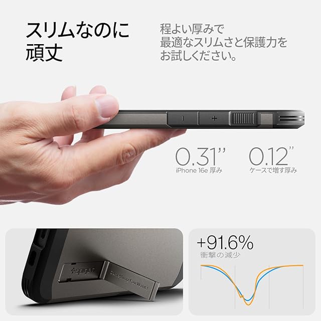 商品名:Spigen 【創業18年の技術力】 iPhone 16e ケース MagSafeアクセサリー対応 マグネット搭載 スタンド 頑丈 マット 耐衝撃 米軍MIL規格 タフ・アーマー(AI)・マグフィット ACS09136 (ガンメタル)