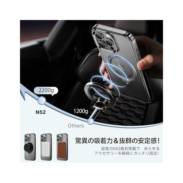 【超磁力&多様なMagSafe製品対応】業界最強のN52磁石を搭載し、16Nの強力な磁力を実現。車載ホルダーとの併用で、悪路や激しい振動でも落下の心配がありません。MagSafe用ワイヤレス充電器、大容量モバイルバッテリー、ウォレットにも即対応可能で、便利に使用できます。冷蔵庫やロッカーなどの鉄部分にも取り付け可能、自由に動画視聴が楽しめます。※鉄の含有量や分布面積によって吸着力が弱くなる場合があります。【①本製品はMagSafeデバイスに対応していますが、Magsafeウォレット使用時に「探す」機能は表示されません;②QIワイヤレス充電には対応しておりませんので、ご購入前にご検討いただければ幸いです。】