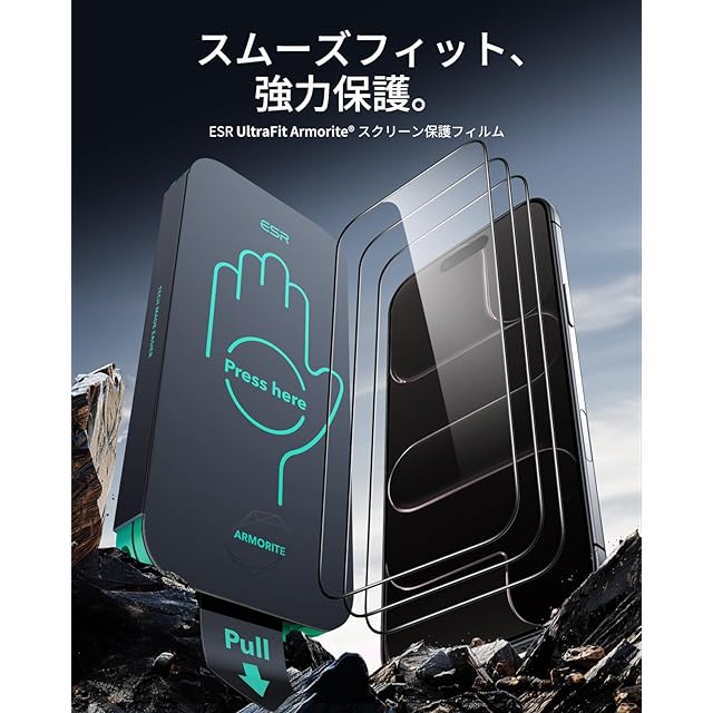 商品名:【3秒で完成・50kg耐衝撃】ESR iPhone Air ガラスフィルム 3枚 9H越え 7倍強化 米軍規格航空材料 自動吸着 指紋防止 AR反射防止 超鮮明な画質 高光沢 気泡無し 目に優しい 飛散防止保護 自動除塵 黒縁あり 高耐久 iPhone Air フィルム Armorite超強化ガラス 超簡単2ステップ貼り付けツールUltra Fitトレイ付き iPhoneエアー専用