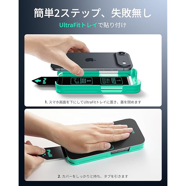 【驚きの簡単貼り!たった3秒で完了】付属の貼り付けツール「UltraFitトレイ」を使えば、セットして、引くだけの簡単2ステップで貼り付けできます!面倒な位置合わせは不要で、貼り成功率が劇的にアップします。誰が行ってもプロ並みに仕上がります!