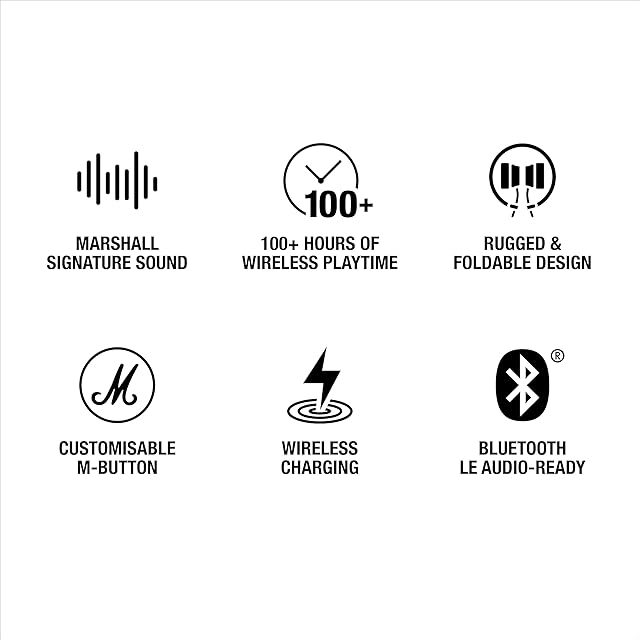 【カスタマイズ可能なMarshallのシグネチャ「M」ボタン】Major Vの「M」ボタンとMarshallアプリのBluetooth連携により、Spotify Tapのデフォルト機能、EQ調整、音声アシスタントなどに即座にアクセスでき、自分好みにカスタマイズした音楽再生が可能になります。