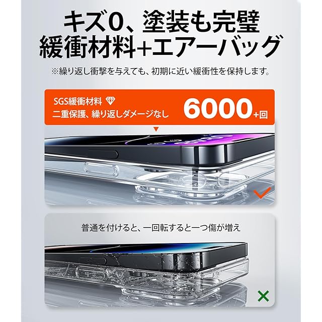 商品名:【究極の透明度・黄ばみ知らずの革新技術!】 TORRAS iPhone 15 用 ケース 透明 耐衝撃 黄変防止 衝撃吸収 指紋防止 ワイヤレス充電対応 レンズ保護 ボタン付属 6.1 インチ アイフォン 15 用「Diamond Clear」 クリア