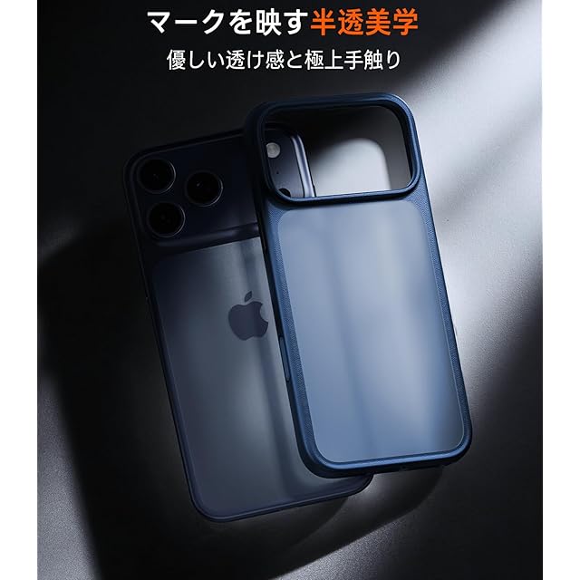 商品名:【3倍米軍進化・マット質感】 TORRAS iPhone 17 Pro Max 用 ケース 耐衝撃 半透明 マット仕上げ 滑り止め 黄ばみ防止 米軍MIL規格 指紋防止 カメラコントロール保護 ストラップホール付き DIY交換用ボタン付属 magsafe非対応 6.9 インチ 「Guardian Series」 ディープブルー