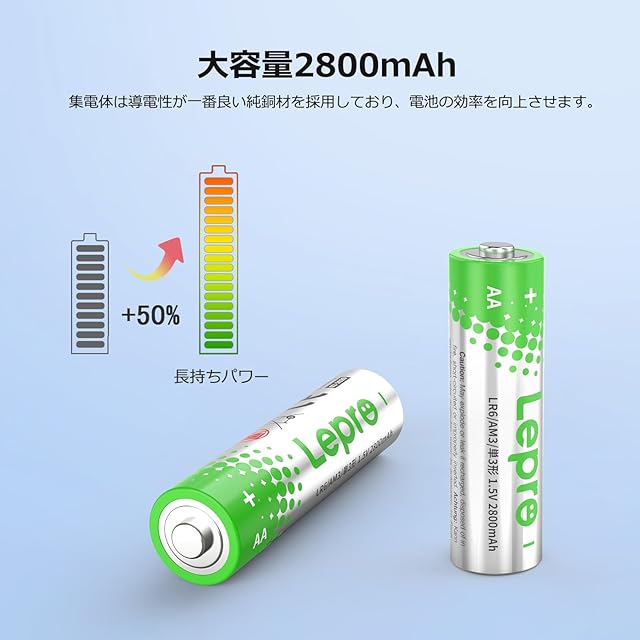 商品名:Lepro 単3形 アルカリ乾電池 48本セット ハイパワー 1.5V 2800mAh大容量 液漏れ防止 耐久 長持ち 長期間保存可能 乾電池式モバイルバッテリー おもちゃ 電池式ランタン 懐中電灯 時計 リモコン 携帯ラジオ 防災用 LR6 [PR130002-48]