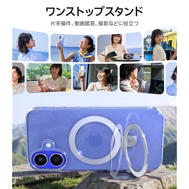 商品名:【最軽量スタンドケース・MagSafe対応】TORRAS iPhone 16 用 ケース 米軍規格 隠れるスタンド 最大25W充電効率 マグネット搭載 薄型 黄変ゼロ 透明 耐久性 頑丈 ワイヤレス充電対応 耐衝撃 滑り止め リング付き アイフォン 16 用 カバー 6.1インチ Ostand C(クリア)