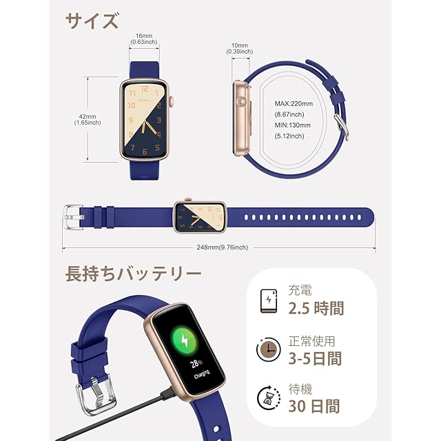 「100+文字盤·座りすぎ通知·生理周期」スマートウォッチ本体に5つの文字盤を搭載。専用アプリで100以上の文字盤をダウンロードできるだけでなく、アルバムや撮影により、お気に入りの写真を文字盤に設定することもでき、毎日気分に合わせたスタイルを楽しめます!専用アプリで座り過ぎのリマインダーの時間帯や間隔を自由に設定し、日常生活に無理なく取り入れられます。体を動かすタイミングを見逃しません。さらに、女性の生理周期を記録する機能では、アプリで生理周期の開始日と終了日を記録することで、次回の予想月経日や排卵日などを予測することができます。