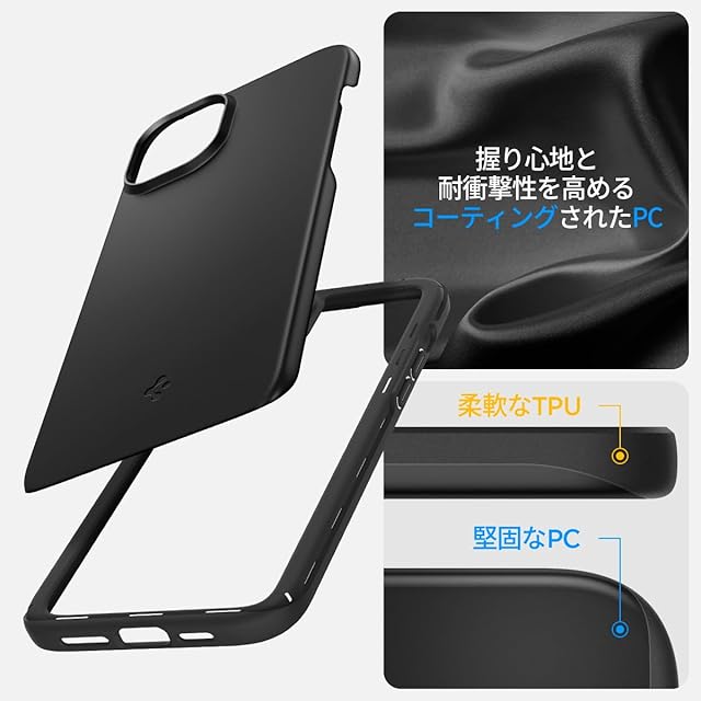 商品名:Spigen 【創業18年の技術力】 iPhone 15 ケース 薄型 耐衝撃 軽量 さらさら 米軍MIL規格取得 2重構造 レンズ保護 指紋防止 擦り傷防止 マット仕上げ ワイヤレス充電対応 シン・フィット ACS06776 (ブラック)