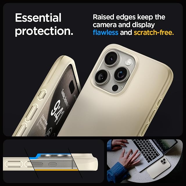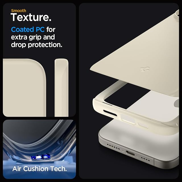 Spigen 【創業18年の技術力】 iPhone 15 Pro Max ケース マット 薄型 軽量 米軍MIL規格 指紋防止 ワイヤレス充電 シン・フィット ACS06551 (ミュート・ベージュ)