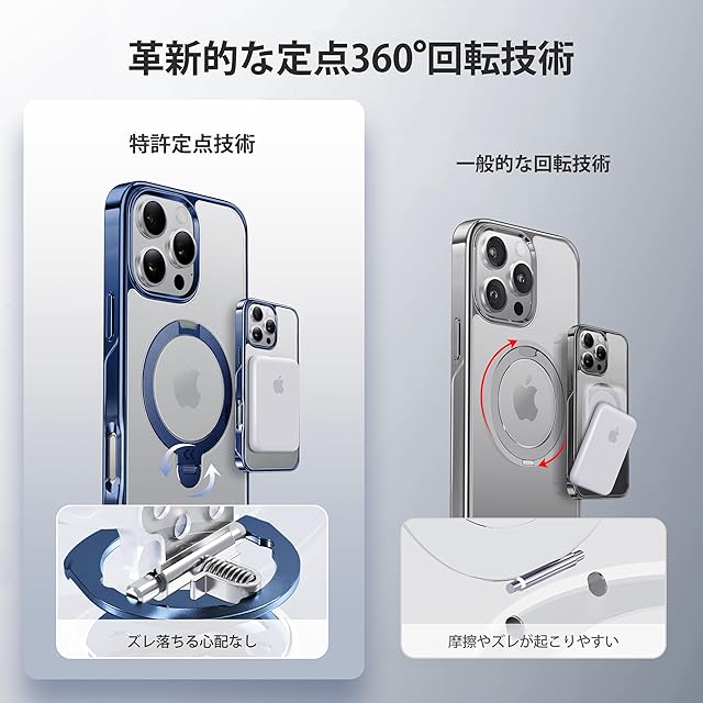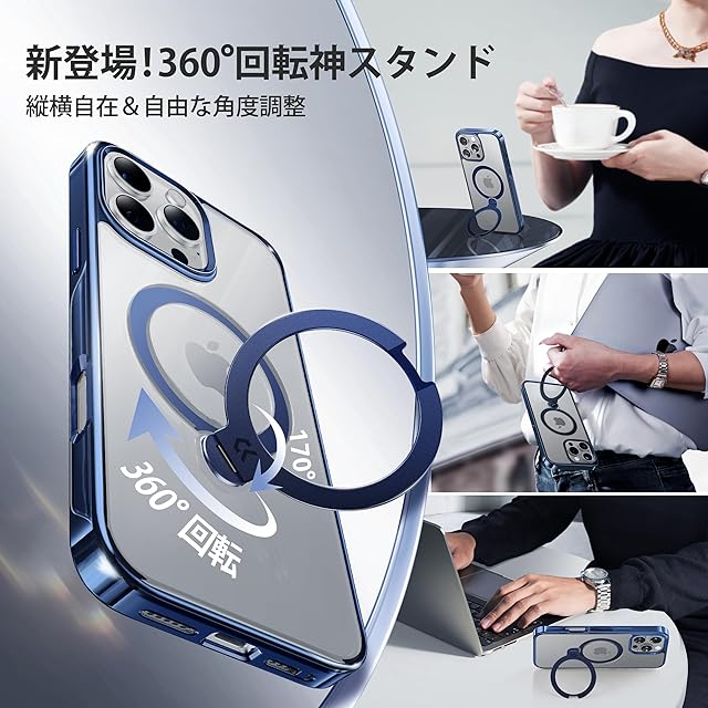 【最新傑作!360度回転スタンド】リング式のMagSafe受け兼スタンドは、360°定点回転軸を採用して縦や横でも0-170°での角度を自由自在に調整でき、市販のスタンドが横置きを調整できず欠点を完全に解消しました!動画再生やビデオ通話などで、自分好みの角度に簡単に設定できます。また、スマホリングとしても片手で簡単に操作できます。さらに、強化された航空宇宙材料でヒンジが改良され、リングの緩みや破損を徹底的に解消した。30,000回の耐久折り畳テストをクリアし、耐久性は従来品より80%に向上!対応機種:iphone 16 pro ケース