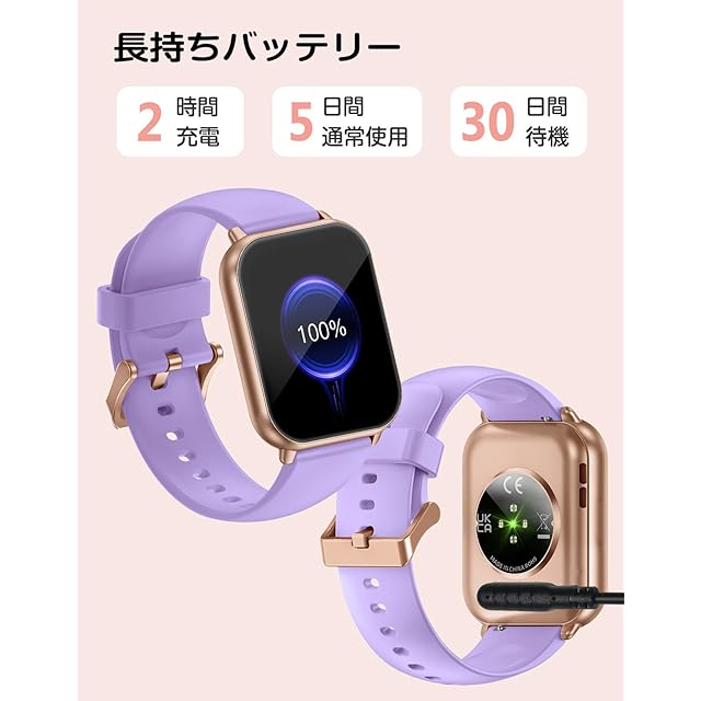 【多種類運動モード&長持ちバッテリー】 活動量計には、ランニング、ウォーキング、サイクリング、サッカー、バスケットボール、水泳、ヨガ、ハイキングなど20種類のデフォルトのスポーツモードがあり、21番目のスポーツモードはアプリでプッシュでき、100以上のスポーツモードがアプリで利用でき、毎日のスポーツニーズに応えることができ、それだけでなく、ユーザーの歩数、距離などを正確に記録します。大容量バッテリーを搭載され、一回のフル充電で約5~7日間持続するバッテリーも魅力です。待機時間は約30日間となります。付属の磁気充電ケーブルをスマートウォッチの充電端子に接続すると充電開始となります(個人の利用状況によっては、持続可能な利用時間が異なります)