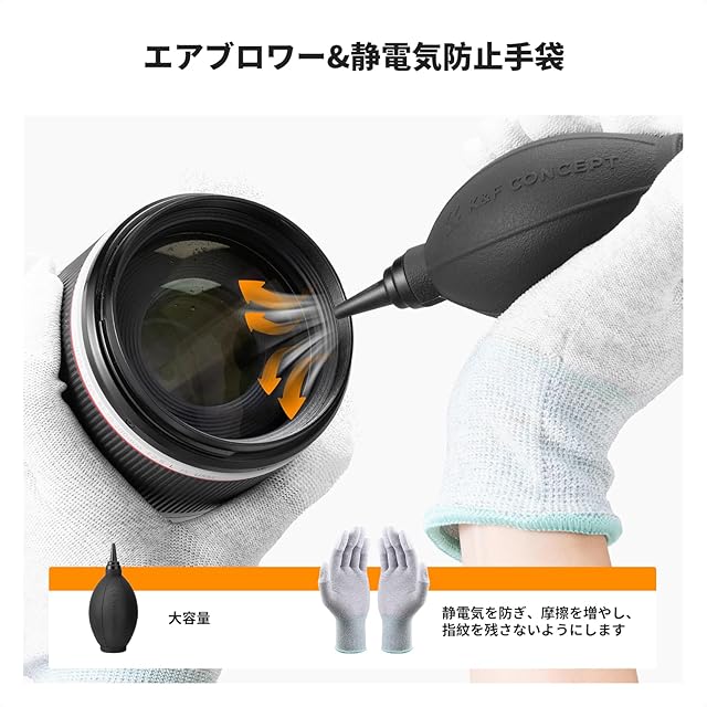 商品名:K&F CONCEPT カメラクリーニングキット 32-in-1セット カメラクリーニング用品 レンズペン+ブロワー+クロス+超極細繊維布+フルサイズセンサースワブ+クリーニングティッシュ+手袋+収納ポーチ メンテナンス用品 お手入れ 掃除用品