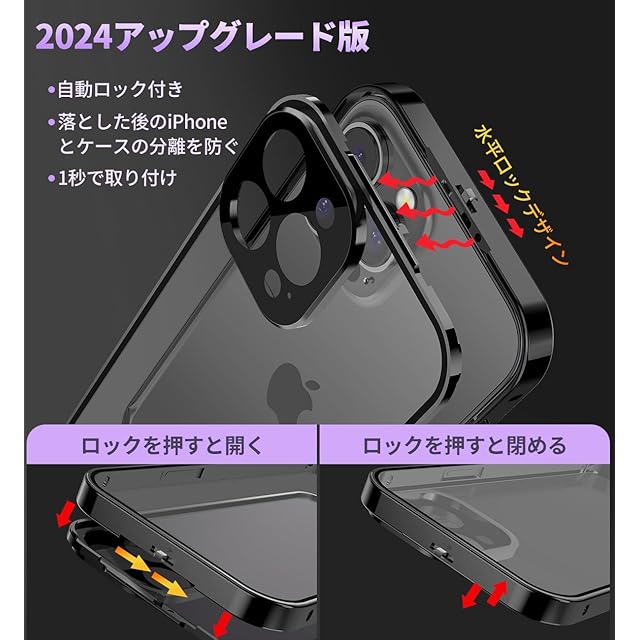 革新的な技術、このiPhone16 Pro 両面ケースは上部にスライドボタン式のロックがあり、前後のケースをしっかり固定します。