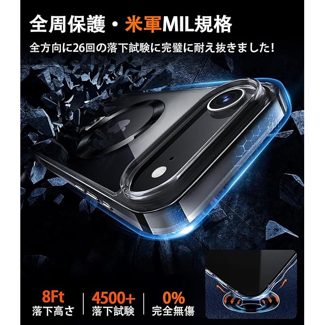 【細部までこだわる保護!米国MIL規格取得】カバーの縁はアイフォンAirの液晶画面より1.55mm高く、カメラレンズより1.2mm高い、併用の全面保護ガラスフィルムで平置きしても画面は接触しない、細部までの保護も配慮され、より一層な安心感を与えられる。米軍規格の「MIL-STD-810G」をクリアしたiPhone Air ケース。360°クッションとX-PRO3代目を搭載し、3D立体緩衝ベルトを構築し、衝撃を吸収して、iPhone Airを完全に保護します。また、内蔵のX-shockエアバッグと360°のリングエアバッグで、衝撃エネルギーの99%を吸収。街での落下も、バッグからの転落も、全てのガード!