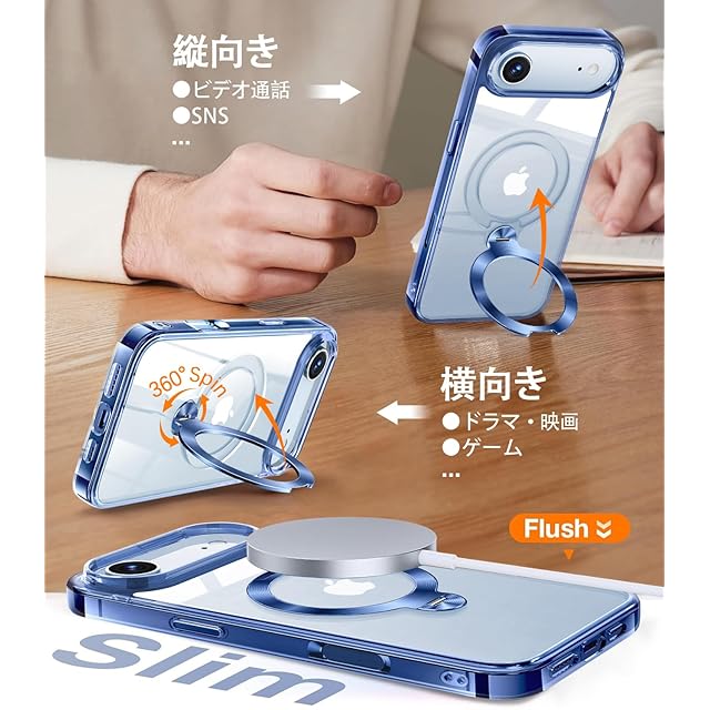 商品名:【唯一無二・360°回転CD スタンド】ZapNet iPhone Air 用 クリア ケース Magsafe 対応 [定点スタンド・超絶安定性][本体を再現・極透明]ストラップホール付き マグセーフ ワイヤレス充電対応 黄変防止 米軍MIL規格取得・耐衝撃 アイホン エアケース マホケースAir 人気 6.5インチ(ブルー)