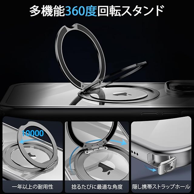 【360度多機能スタンド】多機能スタンドがあれば、映画鑑賞時にはデバイスを横向きにして快適に楽しむことができ、縦向きにすればオンライン学習や仕事を効率的に進めることができます。使いやすさも抜群で、好みに応じて簡単に角度を調整でき、垂直・水平のどちらに配置しても安定したサポートを提供します。角度調整は40°から120°まで自在に行え、外出先でも気軽に使えるため、リラックスした時間を過ごせます。また、リングやスタンドを別途持ち歩く必要がなく、隠しスタンドの設計により、省スペース性にも優れています。収納時には水平に置くことができ、持ち運びの際にも邪魔になりません。