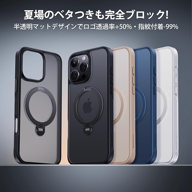 【高精度なカットアウト・指紋防止】精密機械測量で寸法を正確に図り、誤差無くし、密着度1:1の高精度を実現。各ボタンにピッタリあって、本体そのままの押し心地を実現し、ケースを装着したままスムーズに操作できます。また高精度のマット艶消し表面処理と防汚バイオニック技術を使用することで、指紋や油汚れなどの問題を徹底的に解決!夏場でも、ベタつきの心配は不要で、いつでもサラサラでキレイな状態でをご使用頂けます。半透明なマット仕上げなので、スマホの美しいデザインとロゴも隠しません。対応機種:アイフォン16proケース