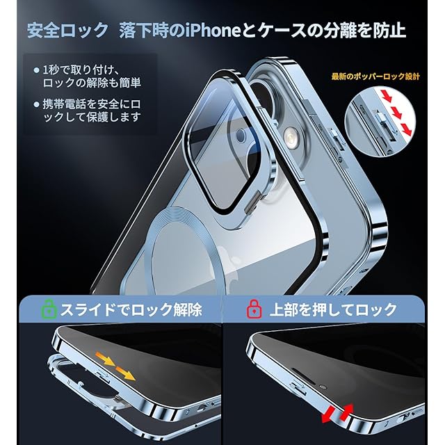 【ロック機能付き&覗き見防止】このいphone 13 ケース は上部にセキュリティロックが付いています。 トップボタンロックを軽くスライドさせるだけで、1秒でケースのロックが解除されます! 同時に、このセキュリティメカニカルロックは、ケースの前面と背面をしっかりとロックし、携帯電話を落としても、お客様のiphoneがこのiphone13 両面 ケースから分離することはありません。 iphone 13 覗き見防止ケースには、左右25°の視野範囲をサポートする覗き見防止スクリーンプロテクターが内蔵されています。(視野角が小さいほど、プライバシー保護が強化されます。)お客様の情報、支払いパスワード、プライベートな事柄を覗き見から保護します。
