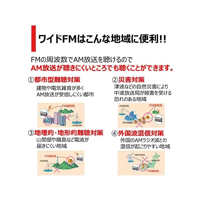 ✅ボタン一押しで登録もらくらく!ラジオ選局が簡単にできる(AM5局/FM10局)。
