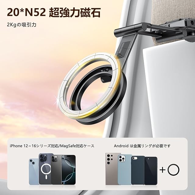 【iPhone 17/16/15/14/13シリーズ&Android全機種対応】マグネットリング付きでiPhone 17/16/15/14/13 Pro MaxシリーズやMag-Safeケース、Androidスマホ・非磁気ケースまで幅広くサポート