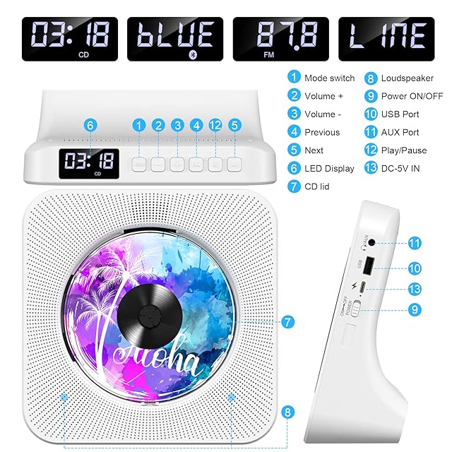 「多彩なファイル形式に対応」本製品はCD,CD-R,CD-RW,MP3,WMA,WAVなどのフォーマットに対応した幅広く使えるコンパクト音楽CDプレーヤーです(ご注意:ブルーレイディスクが再生できません、ご了承ください)。新バージョンのリモコンを付き、ボタンの押し心地がよく、手ごろなボタンのレイアウトガ気持ちいいです。6mの範囲内で楽々簡単に操作できます。 ご注意:ブルーレイディスクが再生できません、ご了承ください