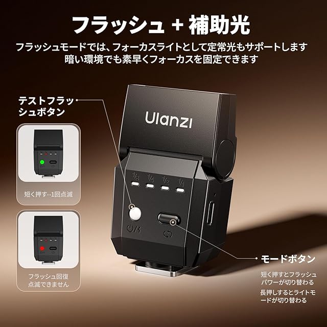 【カメラ互換性に関する警告】:Ulanzi SL03 ミニマニュアルフラッシュは、 Canon EOS Rebel SL3, 250D, T7, 1500D, 2000D, T100, 3000D, 4000D, 200DII, R7, R6II, R8, R10, R50. Sony A9III, A99, A77, A350, ZV-1F mark2. Fuji X-A3, X100F, X100Tにも対応していません。メカシャッターをサポートしますが、電子シャッターはサポートしません。