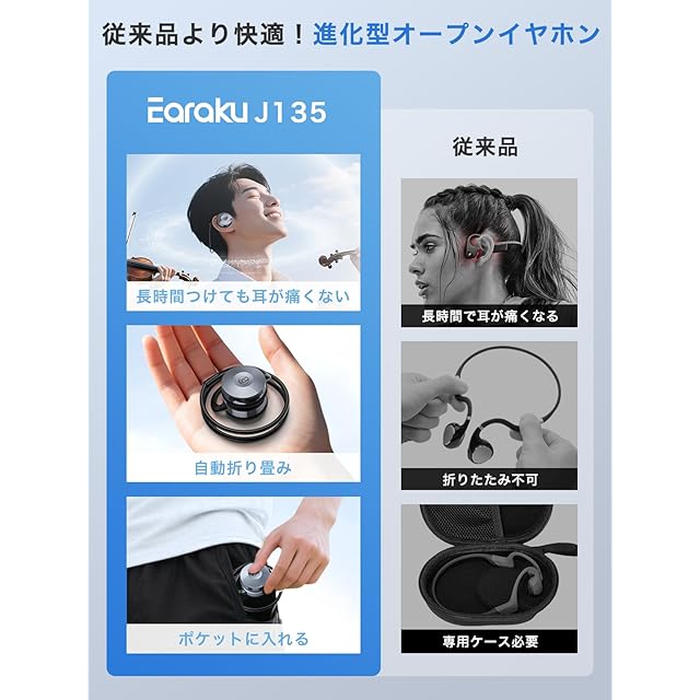 【安心の開放型設計で、周囲の音もキャッチ】音楽に没頭しながらも、周囲の環境音を自然に感知できる設計です。ジョギングや通勤・通学中など、屋外でご使用いただく際も状況を把握できるので、より安全かつ安心して音楽生活をお過ごしください。