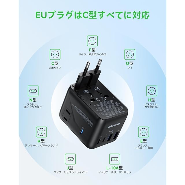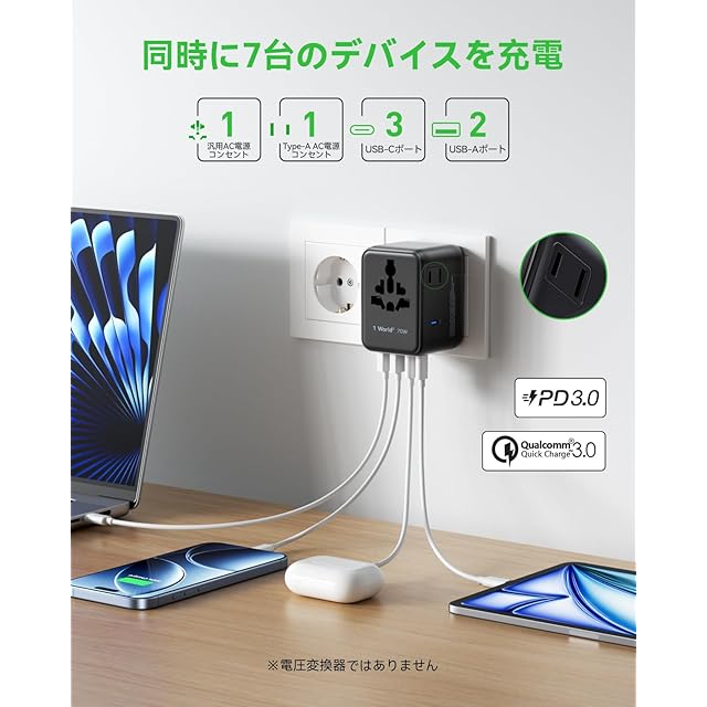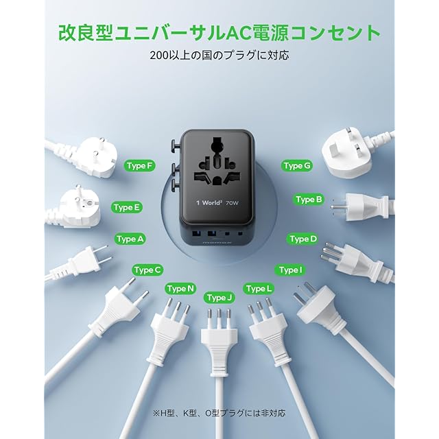 商品名:【最新改良型・より小さい!】MOMAX 変換プラグ PD 70W GaN 急速充電 海外旅行用電源変換 7台同時充電 3*USB-C PD & 2*USB-A QC &2*ACコンセント 2個AC差込口 海外用コンセント C/BF/O/Aタイプ マルチ変換プラグ 全世界対応 ヨーロッパ/韓国/イギリス/アメリカ/オーストラリア 便利グッズ パソコンに対応