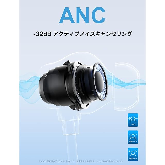 商品名:Rythflo Bluetooth イヤホン ネックバンド型 ノイズキャンセリング ANC搭載 ENC通話 60時間再生 マグネット式ネックバンド IPX6防水 V5.3 ワイヤレスイヤホン Type-C急速充電 通勤・在宅・オフィスに最適
