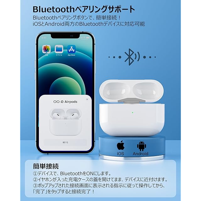 ⭐【ペアリングサポート】イヤホンを充電できるだけではなく、ペアリング機能が搭載し、ペアリングボタンで簡単にiPhoneとAndroid設備にペアリング可能です。