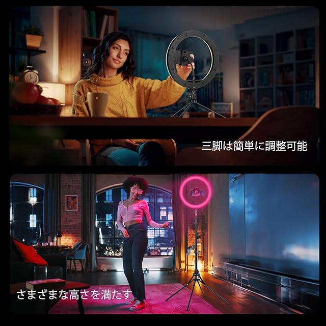 【アップグレードされた多機能リングライト】:取り外し可能なスタンドを装備し、三脚用のリングライトとして、またはスタンドなしで自撮り棒として使用できます。取り外し可能なスタンドは、軽量で柔軟で分解しやすいように設計されており、屋内でも屋外でも使用でき、メイクアップ、ライブストリーミング、セルフィー、写真、ビデオ会議に自然で明るい色調整可能な光を追加できます。