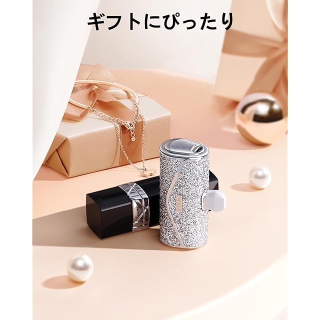 商品名:iWALK モバイルバッテリー おしゃれ 【2025年新登場・きらめく可愛いモバイルバッテリー・光沢感アップ】 軽量 小型 5000mAh 大容量 タイプc 直挿しできるモバイル充電器 USB Type-C 端子一体型 コンパクト iPhone 17/16/15/iPad/Android対応 機内持ち込み可 旅行/出張 PSE認証済み「ギフト&パーティーにぴったり」 (きらめくシルバー)