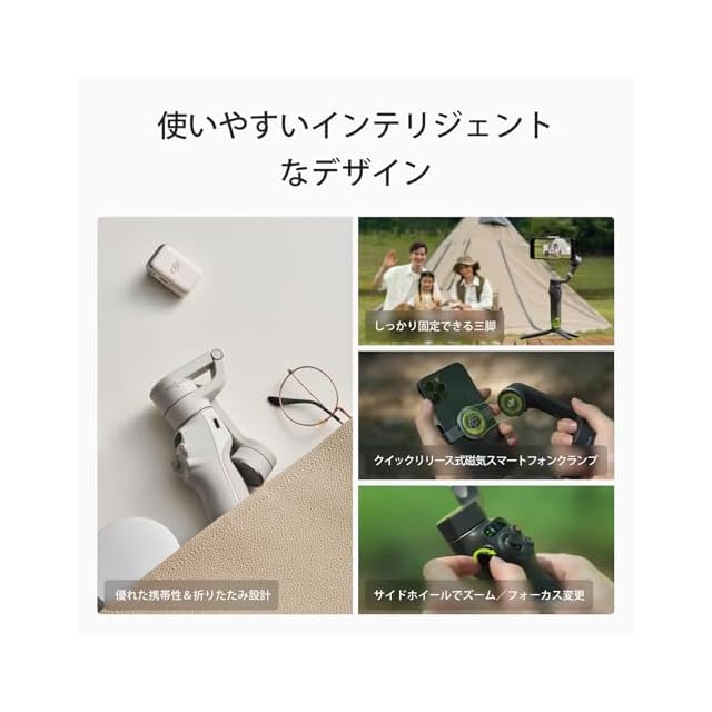 ✅[撮影ガイド&ワンタッチ編集で、かんたん映像制作] - このスマートなDJIジンバルには、幅広い撮影ガイドが搭載され、ダイナミックなカメラワークなど、分かりやすく撮影方法を教えてくれます。また、LightCutアプリを使って、どこにいても簡単に映像を編集できます。