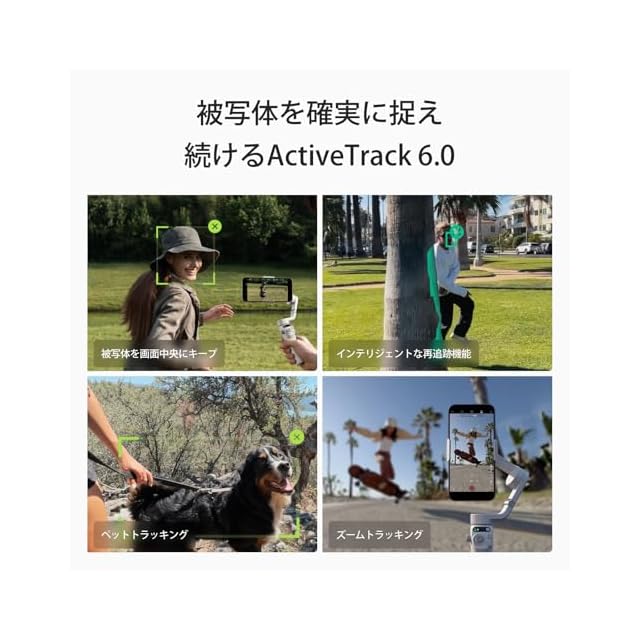 ✅[アップグレードしたActiveTrack 6.0で対象を中心に] - 最新のトラッキング技術により、被写体を選択すると、ジンバルが自動でジンバルをトラッキング。素早くダイナミックな動きで撮影したり、被写体が何かで遮られたりしても、トラッキングを継続します。