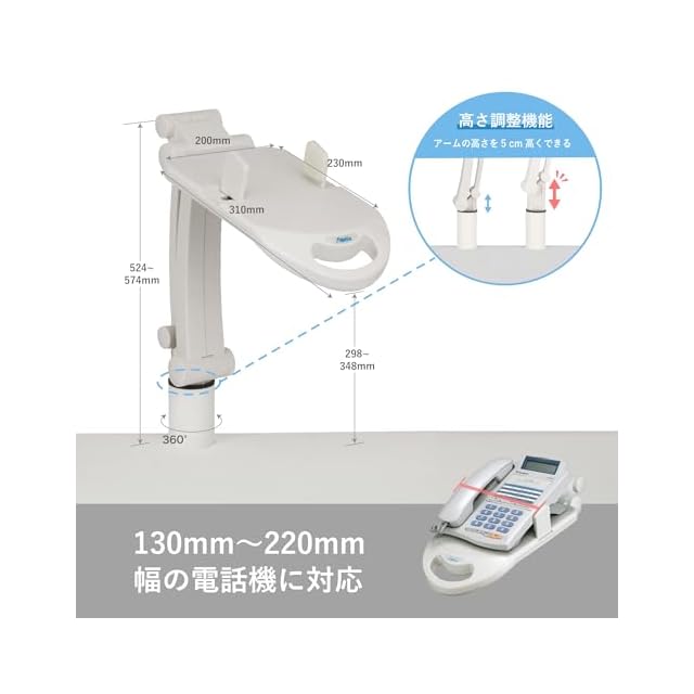 適応電話機:幅130~220mmまで、質量1kgまで