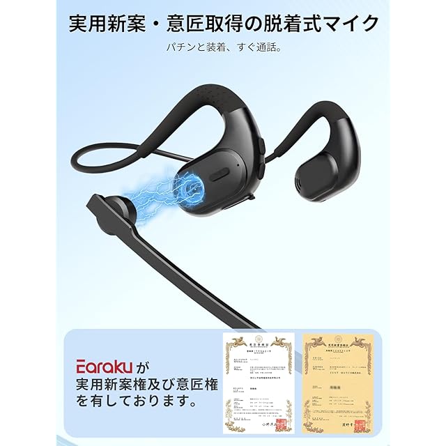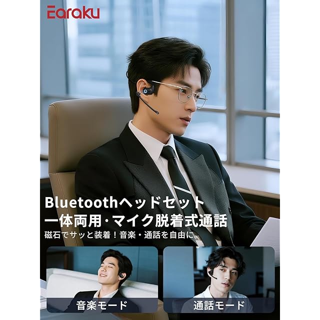 Bluetooth ヘッドセット 【マイク脱着式・実用新案取得&意匠登録済み】 Earaku(イアラク) MicCuff G9 無線 マイク付き イヤホン bluetooth ミュート機能搭載 両耳対応 空気伝導 耳掛け ENCノイズキャンセリング 通話 周りの音を拾わない ハンズフリー イヤホン Bluetooth 5.3 2台接続 オンライン会議 在宅勤務 ブルートゥース Headset