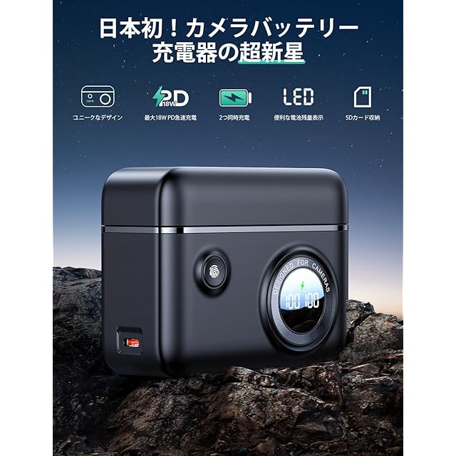 【LEDデジタル表示・細かい部分に配慮】充電器本体にはLEDディスプレイが搭載され、ボタンを押すだけでカメラバッテリー残量がすぐ分かりますので、カメラにバッテリーを装着して残量を確認する必要もなく便利。さらに、蓋はマグネット埋め込み式なので、バッテリー収納ボックスとしても利用可能、SDカードスロットも設置され、収納バッグも付属していますので、外出、旅行時にお役に立ちます。