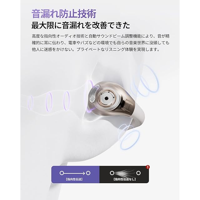 【音漏れ防止技術】耳を塞がないこのイヤフォンは、高度な指向性オーディオ技術と自動サウンドビーム調整機能を搭載しており、音が正確に耳に伝わります。電車やバスの中でも音漏れを最小限に抑えつつ、自分の音楽に没頭できるため、プライベートなリスニング体験を実現します。屋外スポーツやランニング、自宅での作業中、就寝前のリラックスタイムなど、さまざまなシーンでお気に入りのサウンドを楽しむことができます。【急速充電対応】イヤホン本体が満充電の状態で最大5.5時間、付属の充電ケースを合わせて使うと、最大25時間の音楽再生が可能です。※また急速充電に対応し、わずか10分の充電で2時間の再生が可能です。急な外出や通学通勤にも便利です。