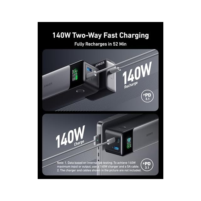 Anker 737 Power Bank (PowerCore 24000) (24000mAh / 大容量モバイルバッテリー) 【USB PD 3.1 対応/PSE技術基準適合/USB-C入力対応 / 140W出力】MacBook PD対応Windows PC iPad Pro iPhone 17 / 16 / 15 Galaxy Android スマートフォン ノートPC 各種