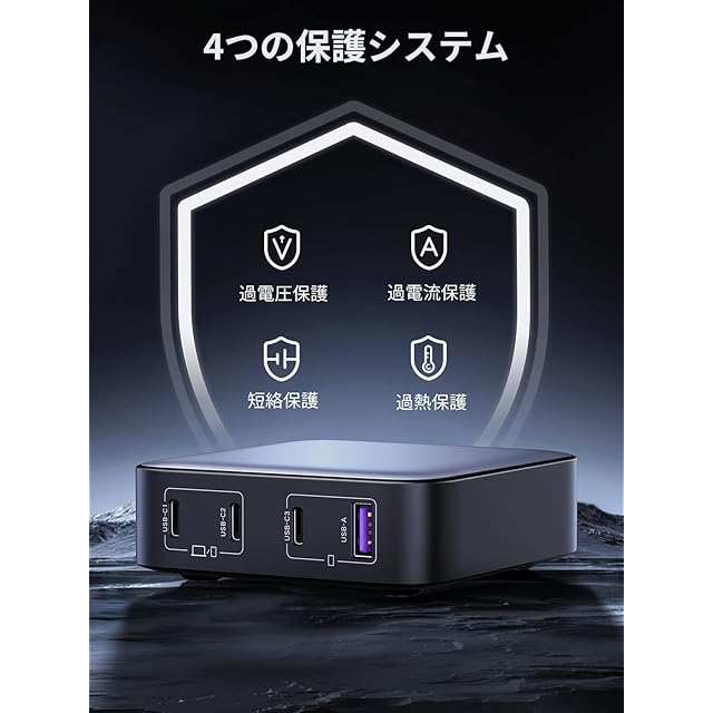 【多重保護機能・誇りの独自の「TG」温調技術】過電流保護、過電圧保護、ショート防止、過熱防止、過電力保護、干渉防止、低電圧保護などマルチ保護システムを搭載!また、優れた独自の「TG」冷却技術により自動温度検知・制御機能があり、UGREENならではの長く使えるあんしんな保護機能!(※TG:Thermal Guard)