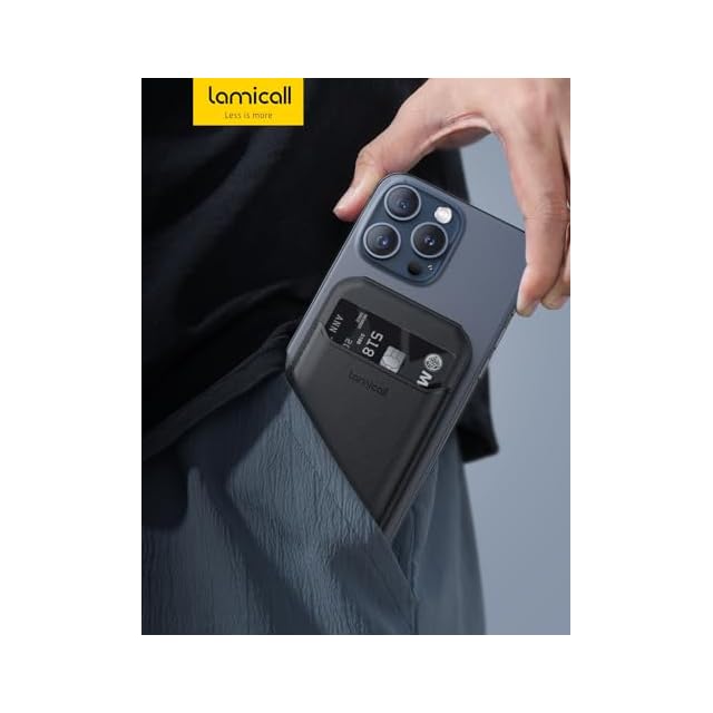 [Lamicall] 重さ改良 MagSafe対応 カード ケース スマホ スタンド : 3枚収納 magsafe 財布 マグセーフ ウォレット マグネット カード ホルダー カード収納 ヴィーガンレザー カード入れ 取り外し可能 角度調整 スタンド機能 財布 iPhone 17 Air 16e 16 15 Plus pro pro max/14/13/12 に対応 ブラック