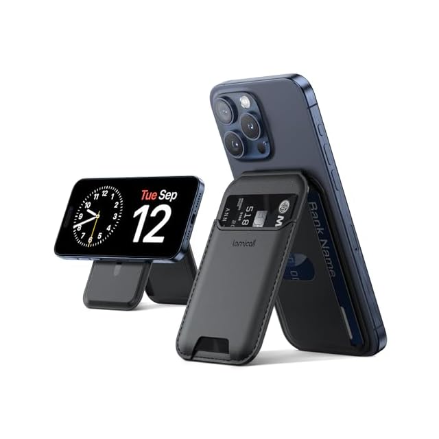 Lamicall MagSafe 対応 カード ケース スマホ スタンド : マグセーフ カード ウォレット, マグネット カード ホルダー, カード収納, ヴィーガンレザー, 強力, 磁石, 薄型, カード入れ, 取り外し可能, 角度調整可能, ケイタイ スマフォスタンド機能, 財布, おしゃれ, iPhone 17 Air 16e 16 15 14, 14pro, 14pro max, 14Plus, iPhone 13, 13 Pro, 13 Pro Max, 13 mini, 12, 12 Pro, 12 Pro Max, 12 mini, iPhone 16/15/14/13/12 シリーズに対応 - ブラック 在 <p><b>【対応機種】</b><br>このMagsafeカードケースはiPhone12/13/14/15/16シリーズだけ(Magsafe機能搭載のスマホ)に対応できます。精巧なデザインで、スマホのMagSafe部とぴったりして、カメラを干渉しません。❗❗❗ご注意:カードケースはiPhone 13 mini/12 minよりちょっと長いです。</P> <p><b>【スマートカード収納】</b><br>カード3枚がそれぞれ独立して入れられます。下部にカードプッシュ穴が設置され、カードを取り出しやすくなります。また、ICOCAなどの交通系のICカードは表面のカードケースに入れたままで使用できます。JRの改札をチエック可能で、手軽にカードを使用可能。magsafeカードケースはスマホのNFC機能も邪魔しません。</P> <p><b>【調節可能なスタンド】</b><br>ヒンジ部分に金属が使われており、しっかりと固定することが可能。スタンドの安定性を向上させます。縦横両方に調整可能だけでなく、10°- 170°の任意の角度に開くことができる。両手を解放し、スマホの操作や動画を見ることなどをより簡単に。</P> <p><b>【強力磁力でしっかりと吸着】</b><br>約1200gまでの荷重に耐える強力磁力です。iPhone 16/15/14/13 / 12 シリーズをしっかりと吸着できます。マグネット式で、iPhone MagSafe シリーズ本体やMagSafe搭載ケースに簡単に装着できます。マグネットなので跡を残さず取り外し可能です。テープ跡や糊残りを気にせずお使いのスマホをきれいな状態でご利用できます。</P> <p><b>【高品質ヴィーガンレザー】</b><br>アニマルフレンドリーなヴィーガンレザーを採用します。スタイリッシュと機能性を両立させます。特別な裏地により、磁気カードに影響なし、カードの磁気ストライプを保護できます。</P> Lamicall MagSafe 対応 カード ケース スマホ スタンド マグセーフ カード ウォレット マグネット カード ホルダー カード収納 ヴィーガンレザー 強力 磁石 薄型 カード入れ 取り外し可能 角度調整可能 ケイタイ スマフォスタンド機能 財布, おしゃれ iPhone 16e 16 15 14 14pro 14pro max 14Plus iPhone 13 13 Pro 13 Pro Max 13 mini 12 12 Pro 12 Pro Max 12 mini iPhone 14/13/12 シリーズに対応 ブラック