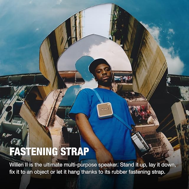 【固定用ストラップ】立てて置く、寝かせる、物に固定する、またはゴム製の付属ストラップを使って吊るすなど、さまざまな使い方が可能な究極の多目的スピーカー、Willen IIをどこにでも持ち運んで、好きなトラックを誰とでもシェアすることができます。