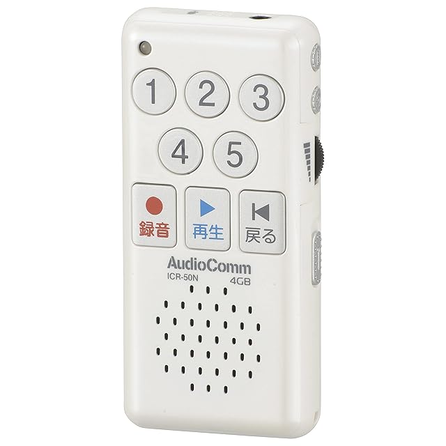 【 特 長 】● 番号ボタンと録音/再生ボタンを順に押すだけの簡単操作● すぐに録音/再生ができるので気軽に音声メモを残せます● 最大録音47時間● 録音件数最大5件● 内蔵メモリー4GB● 乾電池式(単4形乾電池×2本)● モノラルスピーカー内蔵● イヤホン端子付き● マイク内蔵● 誤作動防止のホールド機能付き