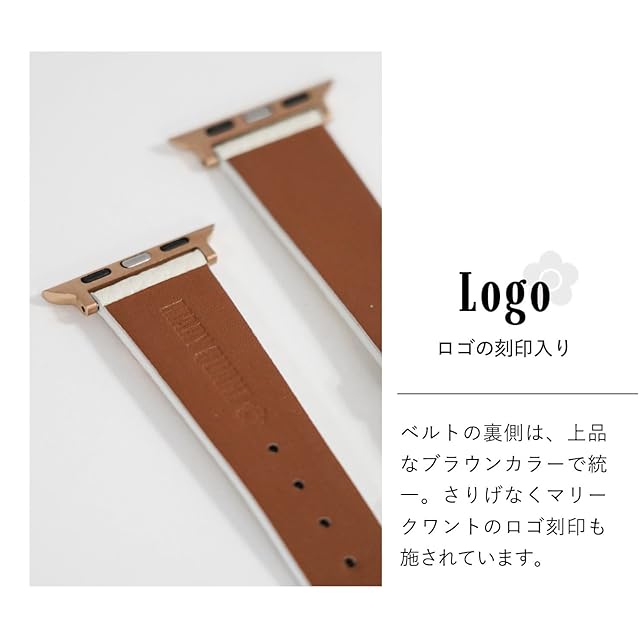【スタイリッシュなデザイン】このマリークワントのアップルウォッチバンドは、シンプルでありながら洗練されたデザインが特徴です。ブラックの牛革素材がどんなスタイルにもマッチし、日常のファッションにエレガントなアクセントを加えます。