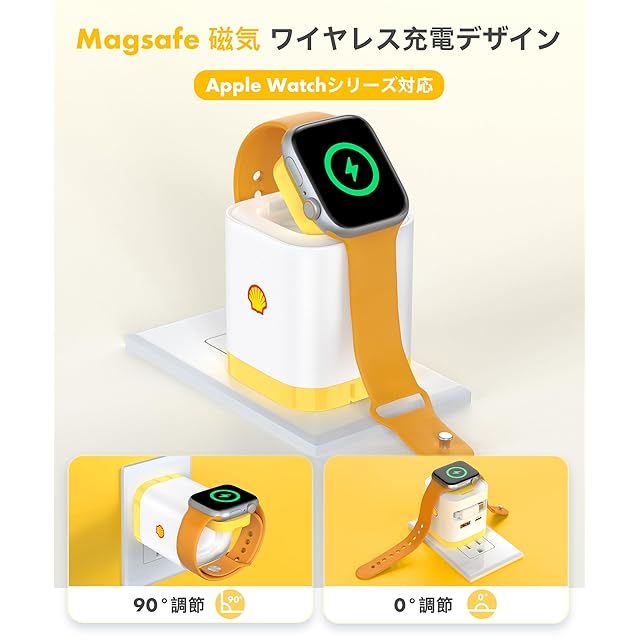 【65W高速充電 & 4台同時充電】Shell 巻き取り式充電器 for アップルウォッチは、2つのTYPE-Cポート、1つのUSB-Aポート、さらに 「Apple Watch用充電モジュール」 を内蔵し、スマホ・タブレット・ノートPC・Apple Watchを一度に充電可能。単体利用時はCポート最大65W、Aポート最大30Wの出力に対応し、デバイスに合わせて最適な電力を供給します。MacBook Air M2ならわずか30分で50%まで充電可能。また、Apple Watch充電モジュールは、折りたたみ式&3段階角度調節(0°・45°・90°) を採用。お気に入りの角度を選び、ストレスフリーで充電できます。放熱性にも優れ、長時間の充電でも安心です。※無線充電はApple Watchシリーズ専用。